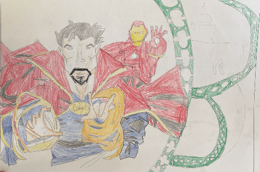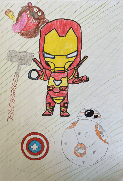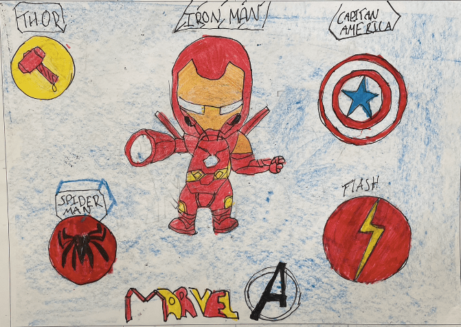 Cada alumno tuvo que dibujar cuatro superhéroes.
